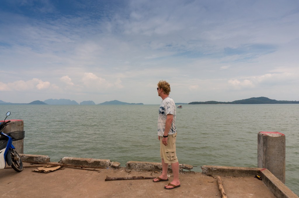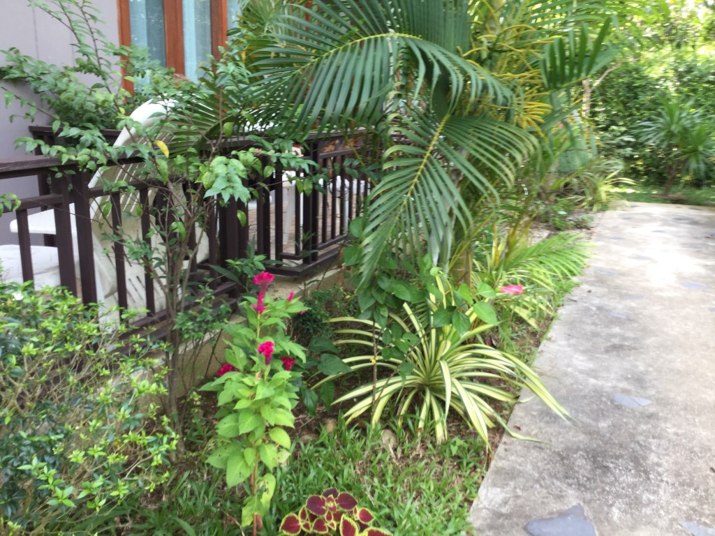 Arriving on Ko Lanta on the ‘Harry Potter mini-bus’ from Krabi, just off the ferry and wondering why places look a bit shabby when you first arrive. The towns we drove through looked shambolic and scruffy and it didn’t help that it was bucketing down and when we were dropped off at our guesthouse the road outside was all dug up and a big digger right outside. It all changed when we were met by the owner and given fresh juice and shown to our lovely clean and spacious room with a tropical garden just outside our little patio, now it’s looking better.