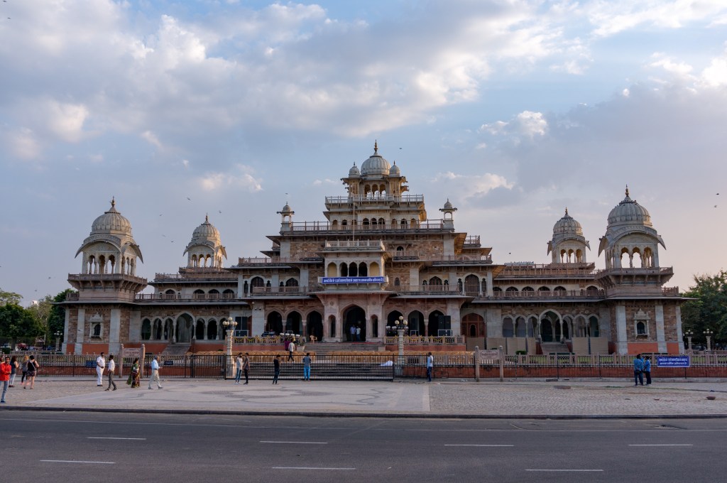 We walked for 10 minutes and found the Jaipur Albert Hall based on the London one built in 1876 and the foundation stone was laid by the Prince of Wales. There must have been a concert on before as it was playing loud Bhangra music on huge speakers outside.
