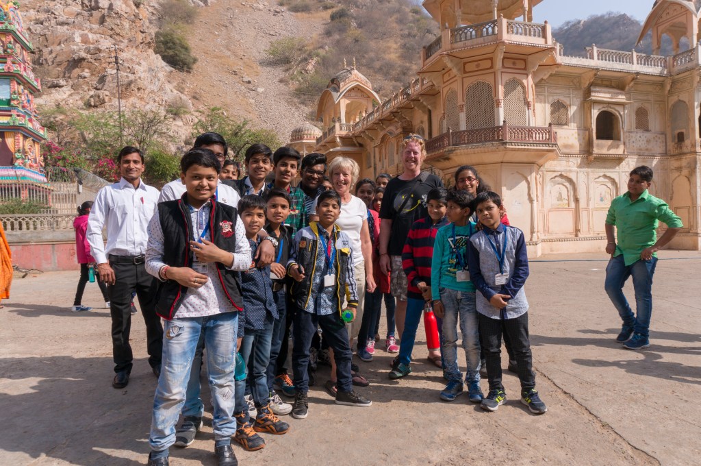 Young girls on the street kept grabbing my hands and kissing them. I am in so many pictures and dozens of selfies. Not sure why they want pictures of me and Chris. Is it the blue eyed ginger alien thing again? It’s a bit weird but very sweet. In the Janta Mantar I had loads of pictures taken with a huge group of schoolchildren and their teachers. Also in the monkey temple, weird.