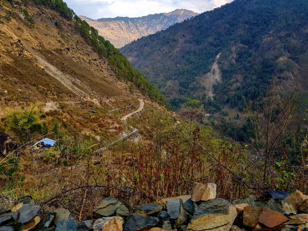 We travelled by car to the second part of our trip and stopped on the way in Bageshwar for dinner in a hotel by the Saryu River. After 8 days of vegetarian food we all ordered a chicken curry, it was very good. We stopped and bought fruit, biscuits and kit kats for our next weeks trekking.