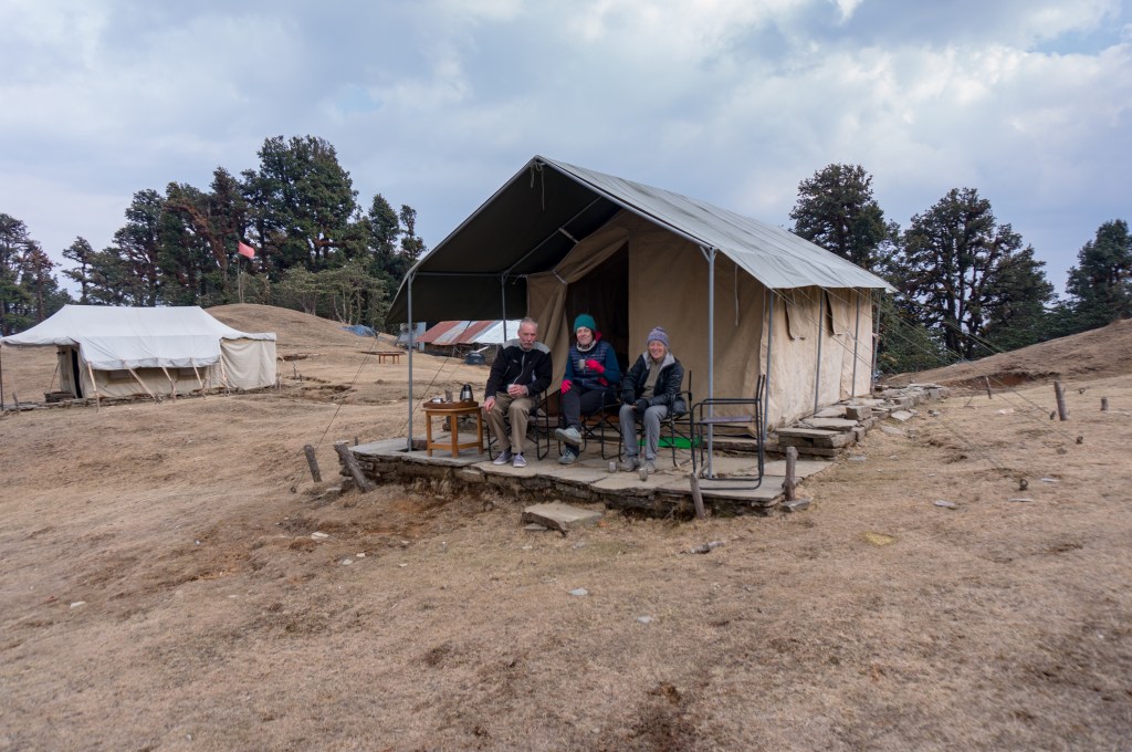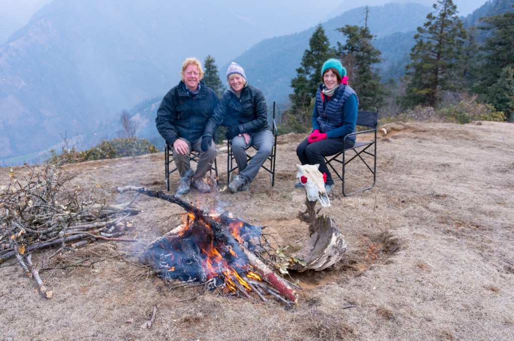 Being with 2 Boy Scouts, Chris and David, we hunted for wood and built our own big campfire before the stove was lit in the dining room. It was very cold. We had about 8’’ of bedding and a hot water bottle, ice on the ground at 7am but an awesome view of the whole Himalayan range of mountains. That’s why we came on this trip. Words don’t do it justice.