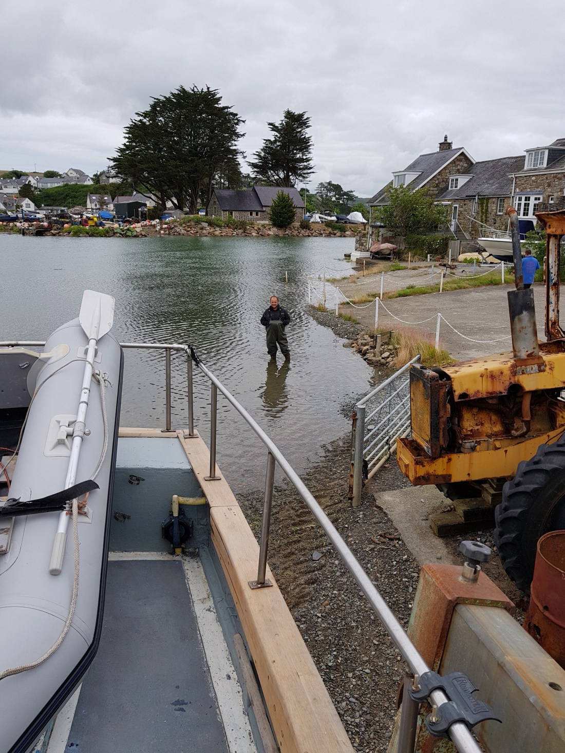 It was a big tide, 5m, so was a relatively smooth operation made easy by Nicko and Dave from the boatyard with Tim being chief photographer on our behalf. We were backed into the water, slings taken off and after a few minutes we were off. Much quicker than waiting on the shoreline for the tide to come in…