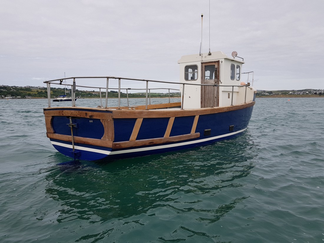 Once on the mooring we lowered the dinghy into the water and Chris got in and attached the outboard. He tied a piece of rope to the engine and the dinghy because it’s not uncommon to drop it in the briny! Many people have, whoops. We checked the boat wasn’t taking on water or had any other problems and when Chris was happy with it we locked her up and jumped into the dinghy. We took photos of Modoc on the mooring, we were both feeling very satisfied and happy because she looks fantastic. We could buy her all over again, no, no what am I saying!!!