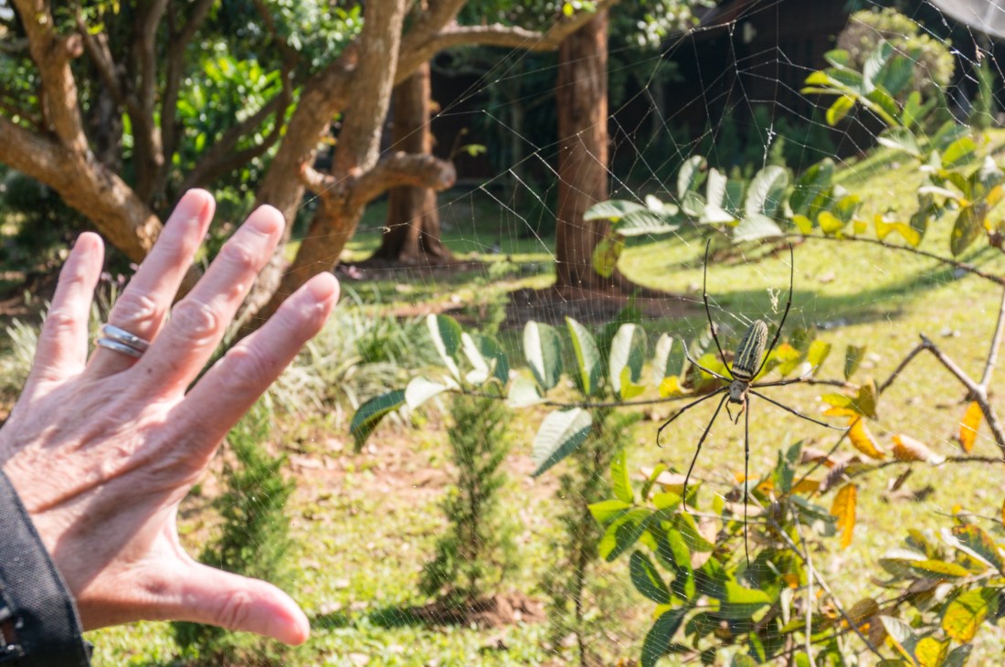 Several Huntsman spider species live in Thailand, and many of them can grow up to the size of a grown man’s hand. Unlike most spiders, they do not build webs, but instead rely on their speed and agility to catch prey. They can often find their way inside houses and other dwellings in search of cockroaches and other insects. This one was under my flip flop a couple of years ago outside my hotel room