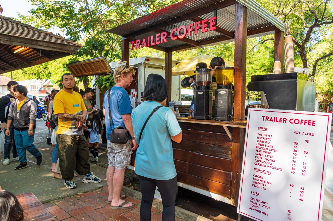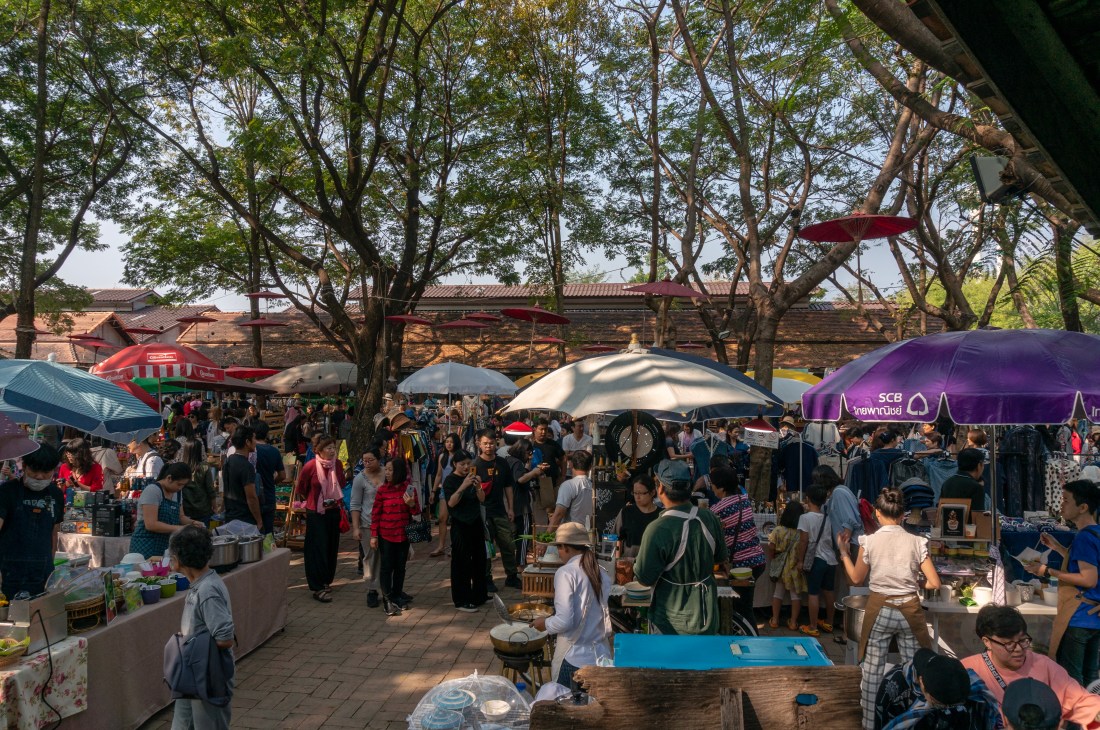 There are many food stalls, very smart clothing sellers, sewing cooperative goods and makers of all sorts of things, different to your normal Thai markets.