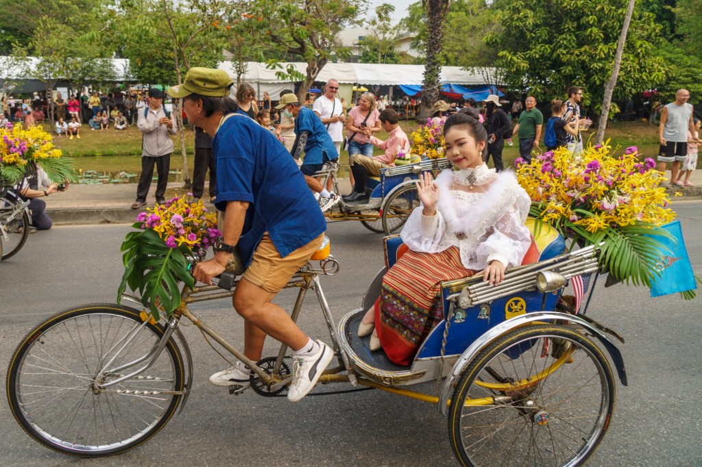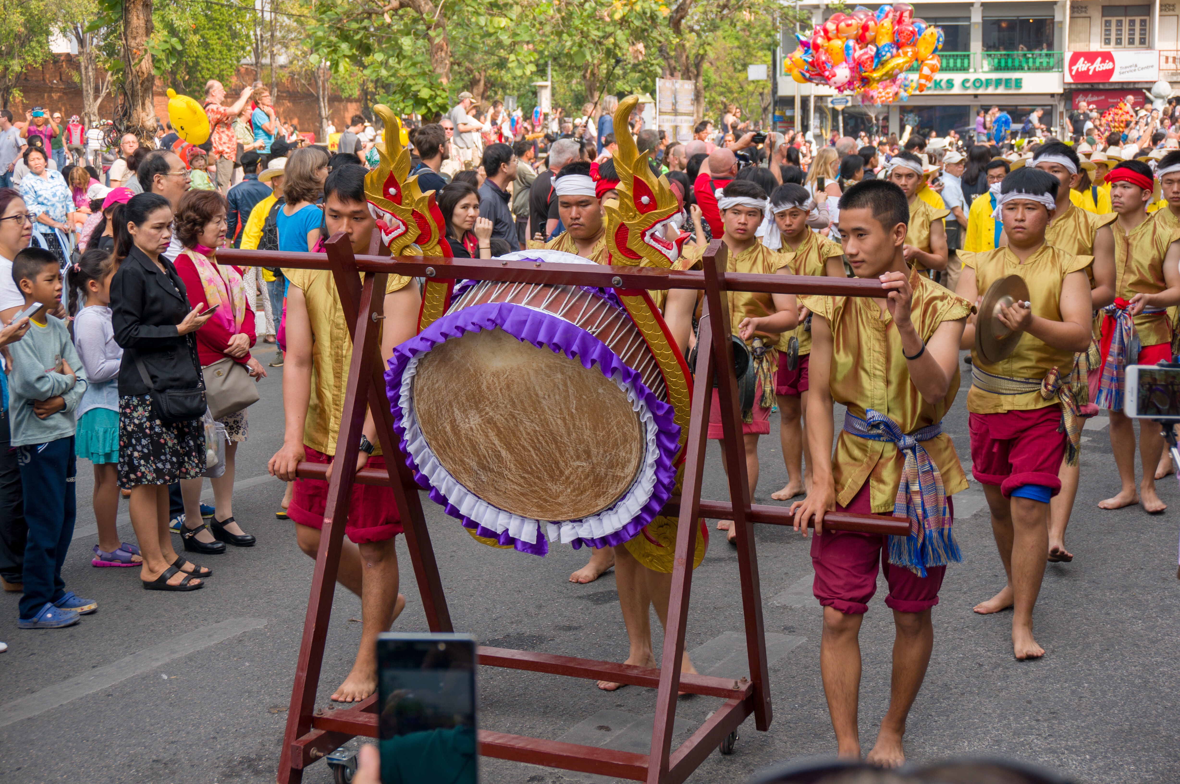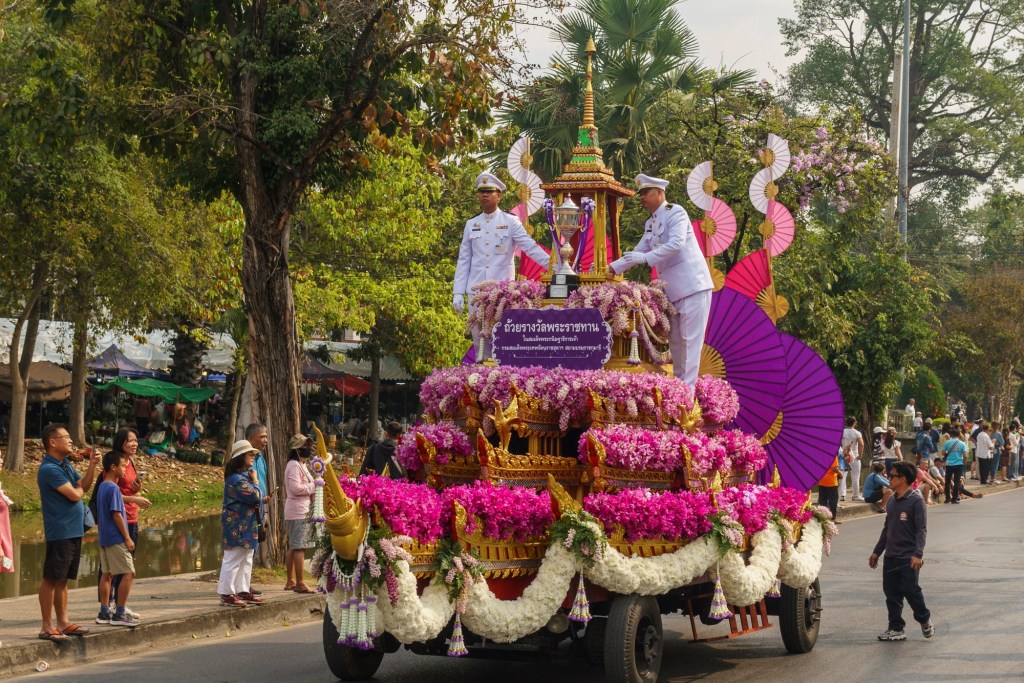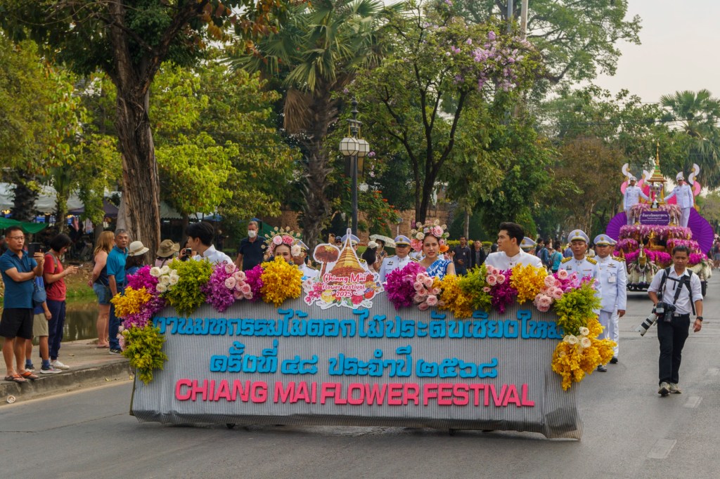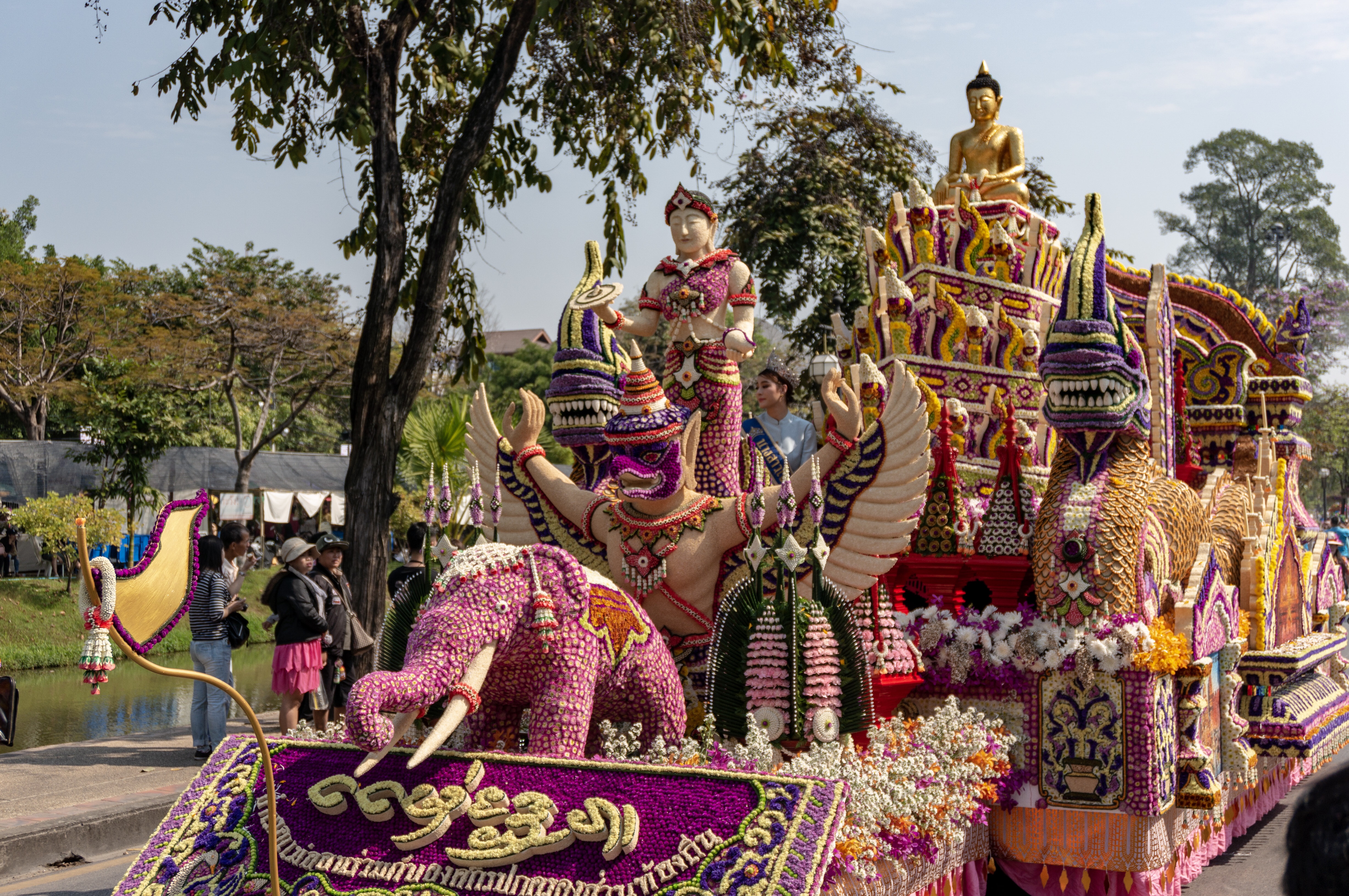 It’s time for the 48th Chiang Mai Flower festival and I couldn’t be happier. The city is awash with people and traffic, we slowly make our way to our favourite place to watch the parade. It’s outside a hotel, they supply free drinks and snacks, there are bathrooms, a perfect spot. It’s our favourite CM event.