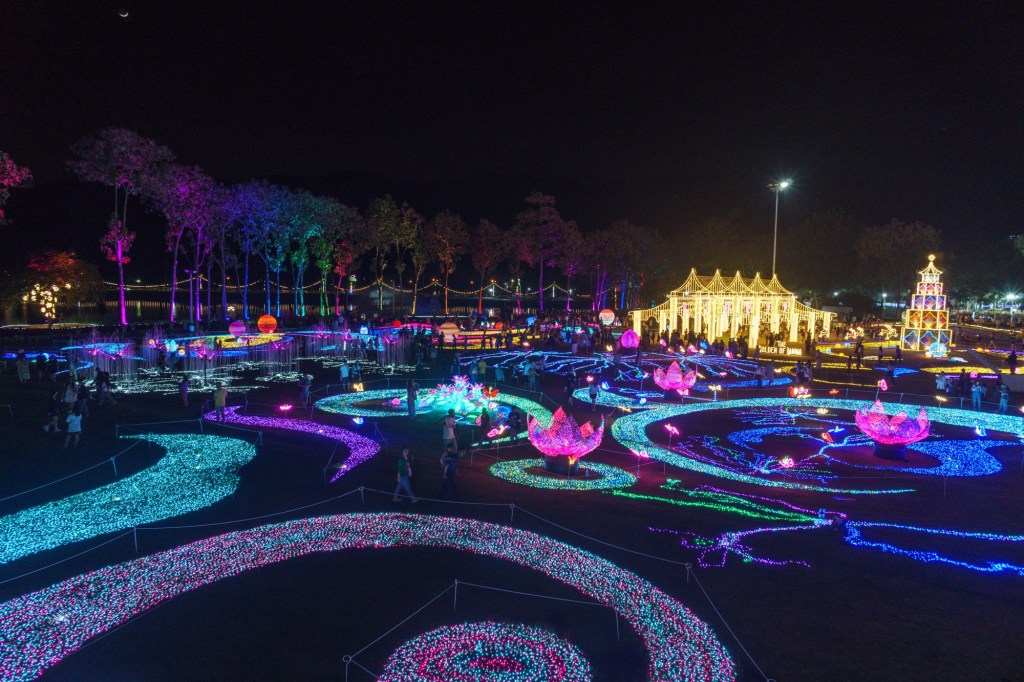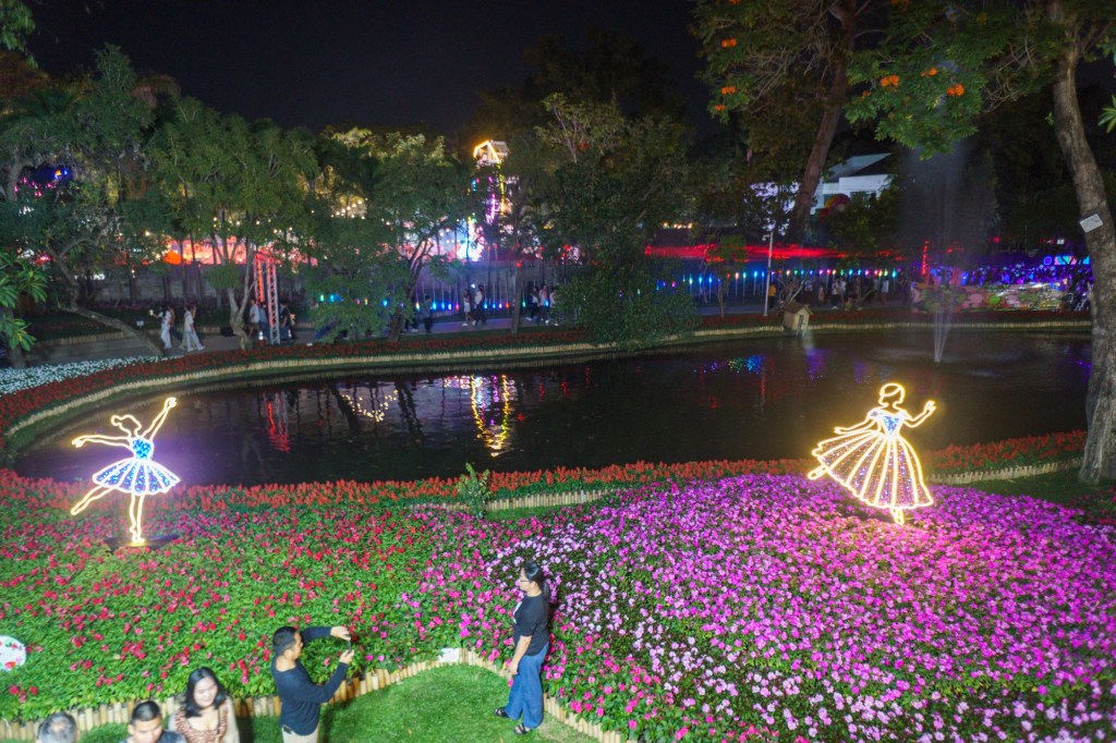 It’s now just out of town in a huge field next to a lake near government buildings. It’s more a food market with hundreds of stalls, yes some nice plants and lots of fairy lights and a few fireworks over the lake.