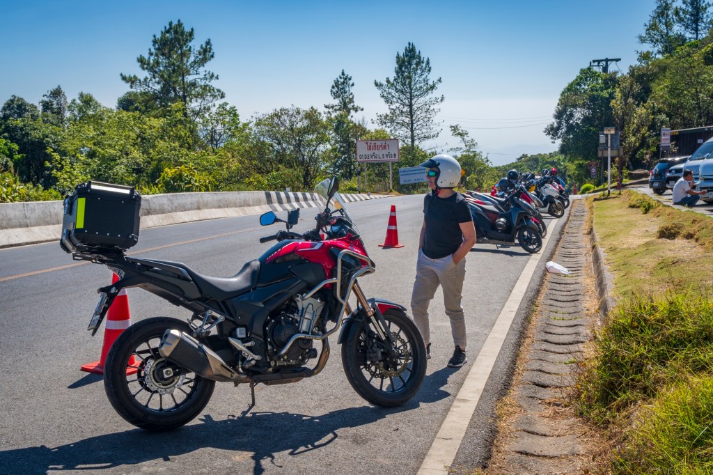 We are driving to the summit of Doi Inthanon, Thailands highest mountain . It’s a 100km drive with very steep climbs to the summit so we’re hiring a bigger bike. No more dawdling 2 up on an underpowered scooter willing it to get to the top, we’re going big!