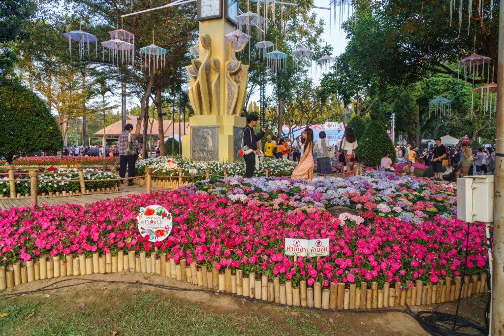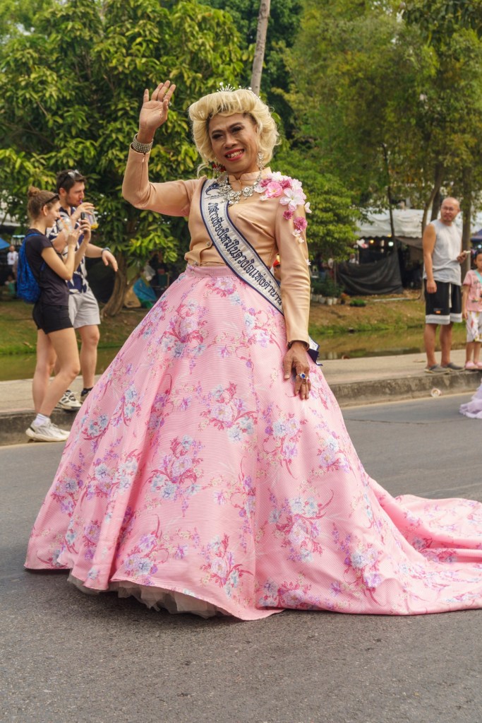 The original flower festival parade started by the train station with hundreds of participants and floats and slowly made its way to the moat road which surrounds the city. It took about 4 hours to get to its final destination, Suan Buak Hard public park on the inside of the moat.
