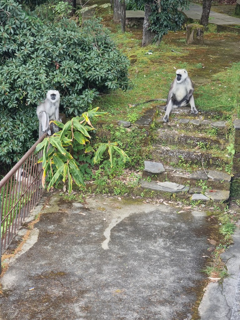 We had another forest walk, monkeys, black faced langurs bouncing through the trees collecting and eating mushrooms which are prolific. The white mushrooms are poisonous to humans but our guides were picking the yellow oyster looking mushrooms for their lunch or the tasty pakoras they serve us every afternoon after our walk.