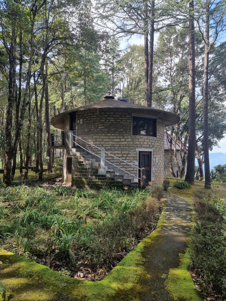 The house and now wildlife reserve was the British commissioners house for the region of Almora built in 1863. Our accommodation is round houses in the garden with a view of the mountains. Now we are excited.