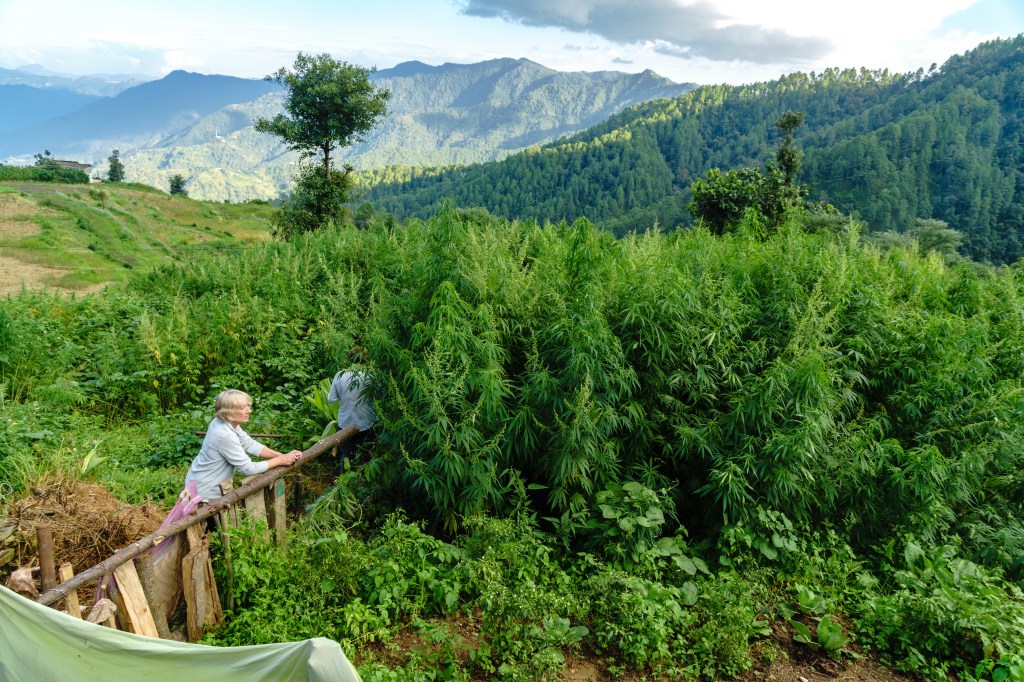 After breakfast once the mist had disappeared we went for our village walk. The village has 5 families with many generations, lots of siblings with their families. Women were hard at work cutting maize and hauling produce up the steep paths. All very curious of the visitors.