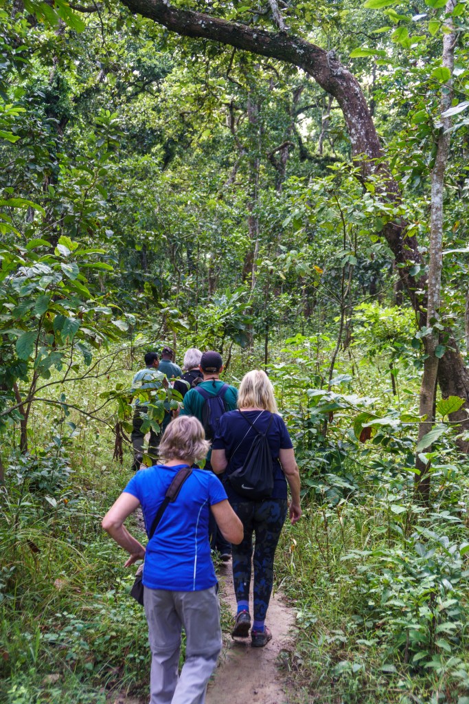 After breakfast we walked in the forest, passing villagers taking their animals to graze amongst the trees. Cows, oxen and goats led by brightly dressed young village women.